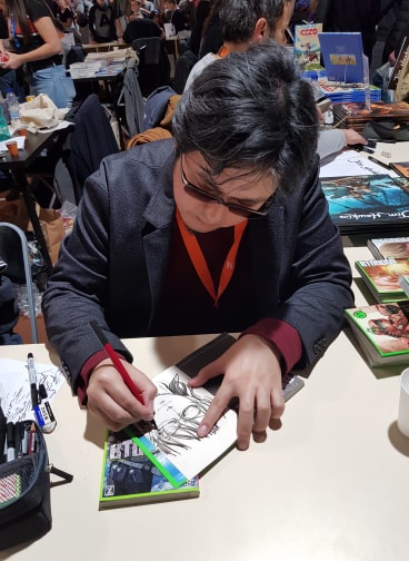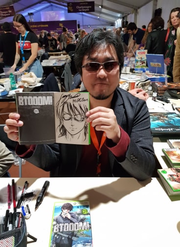 Entre deux signatures, j'ai récupéré la jolie dédicace du manga acheté pour mon fils Mirco par la superstar japonaise Junya Inoue.