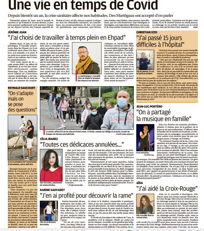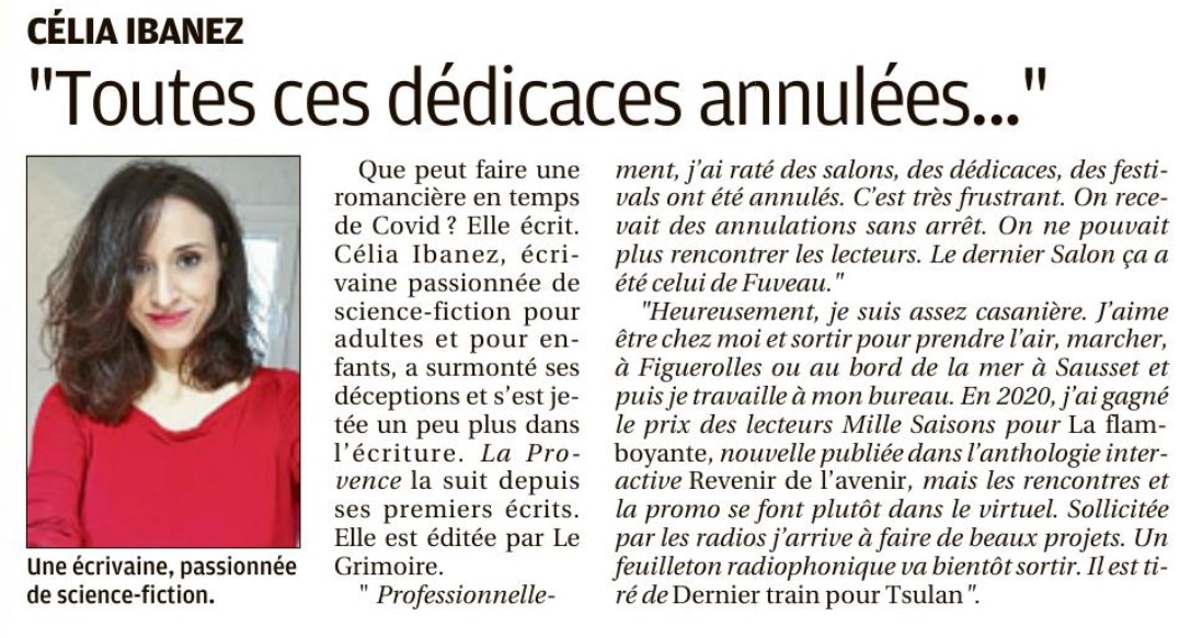 C'est l'article de Nicole Garouste, que je remercie chaleureusement, paru récemment dans La Provence. La journaliste m'a interviewée il y a quelques jours pour savoir comment j'avais vécu ces mois dystopiques de confinement et de couvre-feu.
